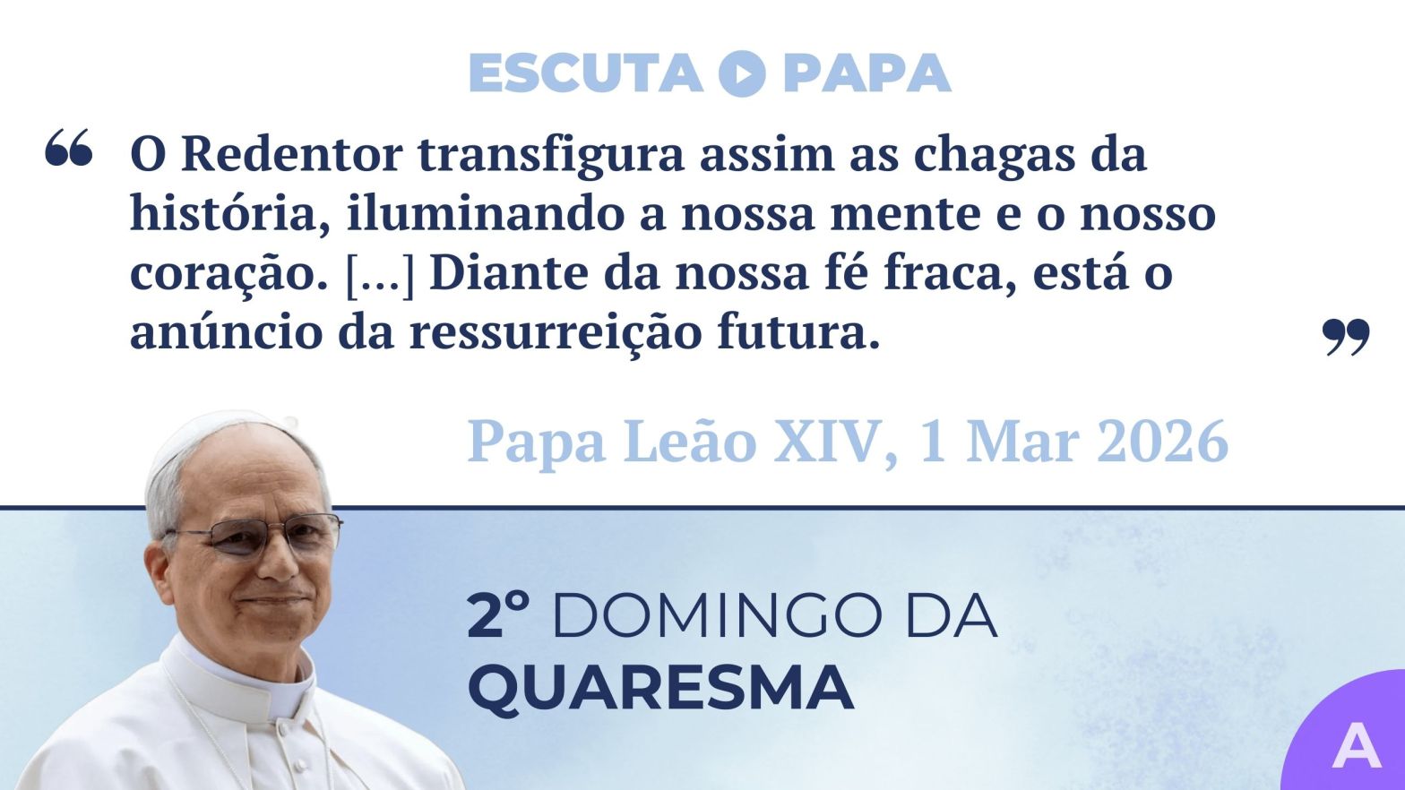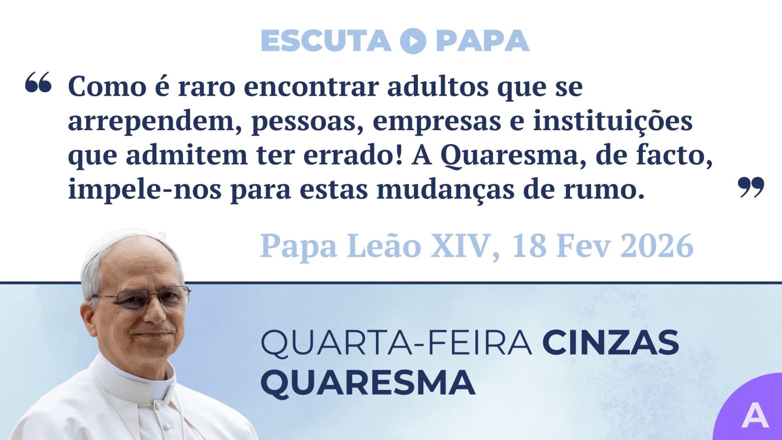Hoje, entre nós, está em causa essa mesma possibilidade. […] «É este o tempo favorável, é este o dia da salvação!» (2 Cor 6,2). […] A Quaresma, de facto, impele-nos para estas mudanças de rumo — conversões — que tornam o nosso anúncio mais credível.