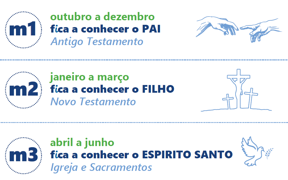 Este é um curso de catequese católica que pretende proporcionar uma formação sólida, mas com linguagem e métodos acessíveis. O curso está dividido em 3 módulos contínuos e interligados, tentando analisar a Revelação de Deus à humanidade, desde o início dos tempos até ao dia de hoje.