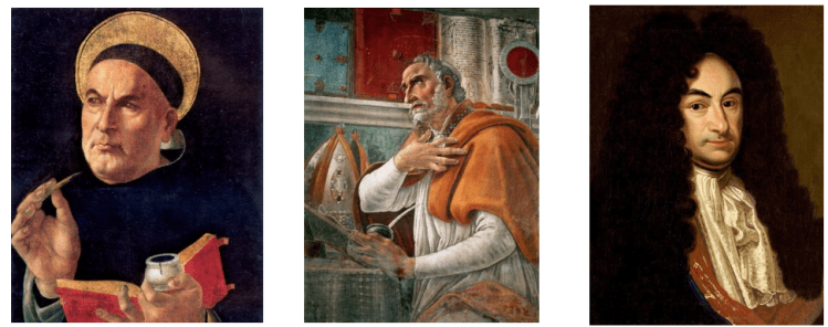 Agostinho, Tomás de Aquino, Leibniz